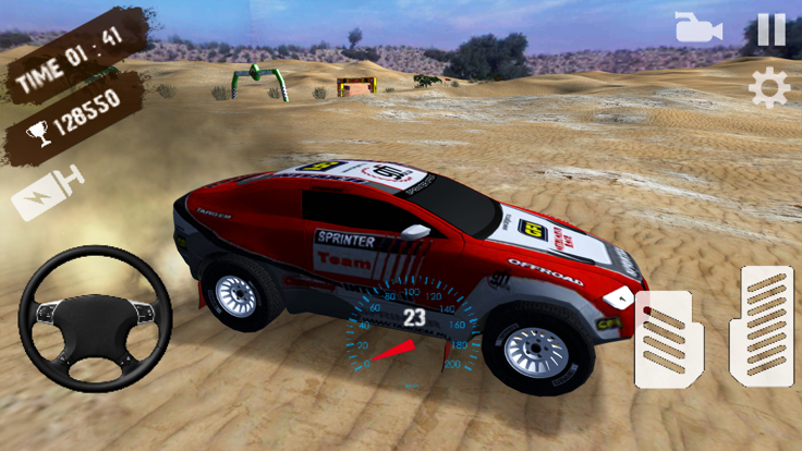 • 在不同的沙漠轨道上精确驾驶吉普车物理
