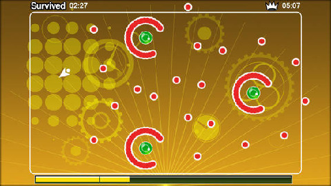 一款非常容易上瘾的游戏,游戏规则很简单:运用重力操作控制画面中的小箭头,躲避红点的追击,不能与之接触。可以吃掉其它武器,消灭小红点越多分数越高。