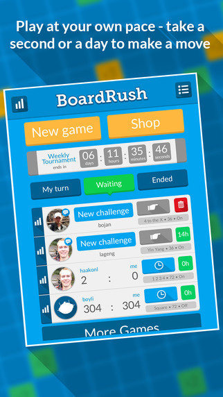 BoardRush is a super social and mobile battle of boards! Your ammunition? Multi-colored tiles with different symbols, a huge selection of boards and a wicked board designer!