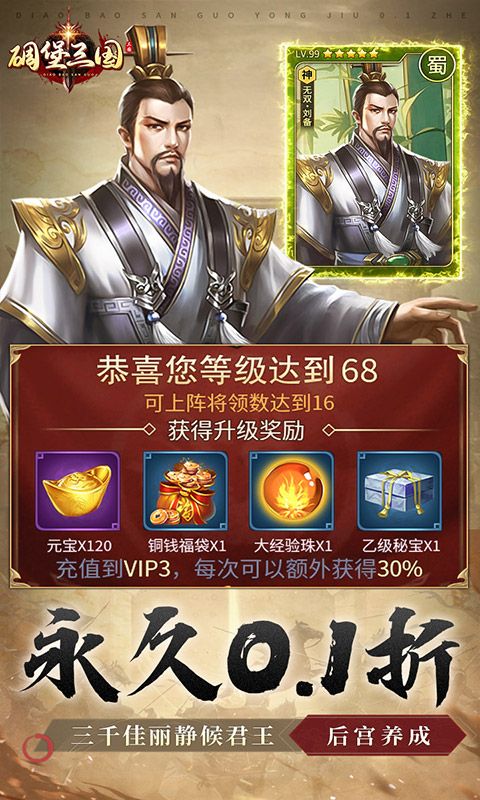 ★后缀说明:升级豪礼董卓、袁绍、神将万人敌张飞等武将升级就送