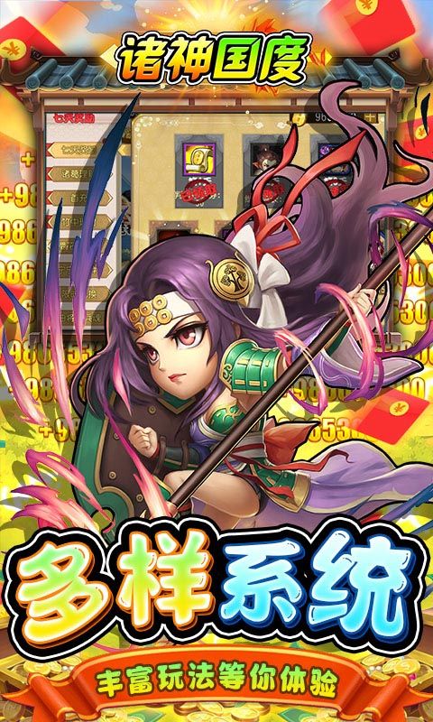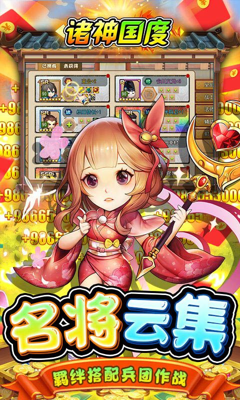 《诸神国度》是一款Q版和风的日本战国RPG卡牌游戏,登录就送织田信长,首充就送真田幸村。人间五十年,去事恍如梦幻,天下之内,岂有长生不灭者。故事以日本安土桃山时代为背景,各地大名纷纷崛起,战火纷飞,民不聊生。自古乱世出英雄,游戏中玩家将扮演守护一方的大名,可以招募心仪的家臣、训练各具特色的武士兵团,来改写一段属于你的战国史。