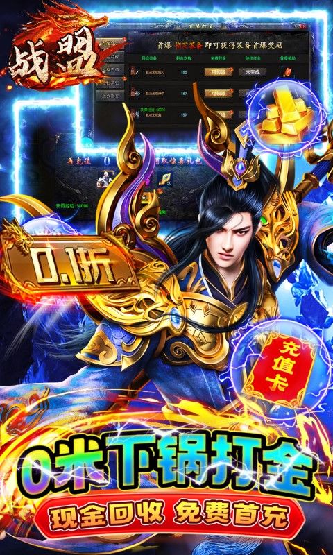 《战盟(0.1折无限充)》首款超爽燃战0.1折1:10传奇正式上线!!!!装备首爆回收大量现金卡,可解锁所有【专属魂环】和限时首充;创新【图鉴玩法】,所有装备都可以激活图鉴,增加大量攻击,砍怪挂机无压力;【15日登录】送超多时装、称号,好玩的传奇,不解释!