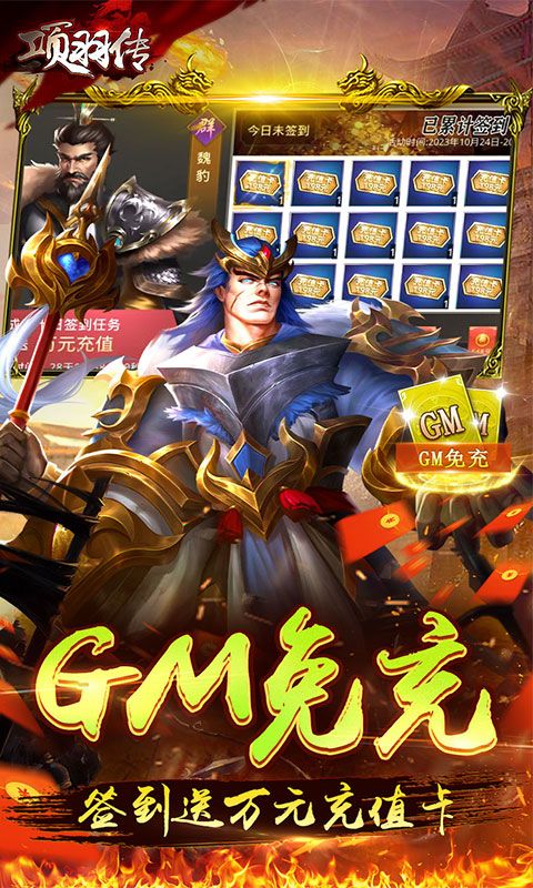 ★上线福利:上线送满V,红将·龙且,200万元宝!