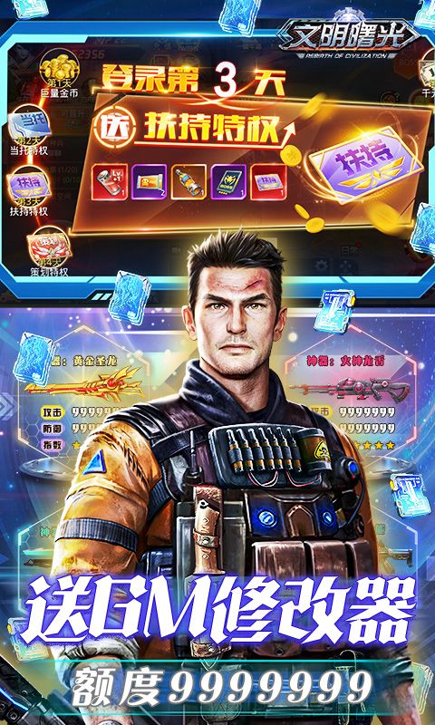 《文明曙光(永久首续1.5折)》上线领取GM工具,可免费使用无限充值648,新增刮刮乐活动,万元现金卡,随便抽,累计登录再送十万元充值、可激活充值活动,让你有花不完的钱,登录送当托特权卡、扶持特权卡、策划特权卡;本游戏以寻找拯救末世的希望,快来踏上探索新世界的征程!王者擂台,失落遗迹、清理废土、赏金任务、个人BOSS、方舟争霸等多样玩法等你来挑战,还会获得独一无二的称号!
