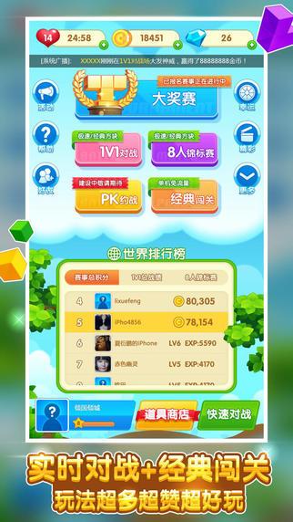 《方块世界》是一款休闲游戏,经典俄罗斯方块超强重制!超爽的实时联网真人对战!还有超萌关卡消除闯关! 操作流畅,支持“手势拖动”和独创的“一键点选”两种操作模式,新手高手都能找到快乐! 超多模式,人人都会,让你找到童年的回忆!