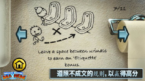 游戏采用了素描风格,主要描述了男厕所里的礼节问题。玩家扮演的是厕所门卫,主要工作就是引导尿急的绅士们准确无误地进池。如果让绅士们等得太 久,他们就会变“野兽”,尿到地板上。(尿急的人是会失去理智的)可想而知,清扫就变成你的工作了。如果你破坏了男厕所那些不成文的规矩,甚至会让大家大打出手,想要大家尿尿有风度,那就得保持好队形。