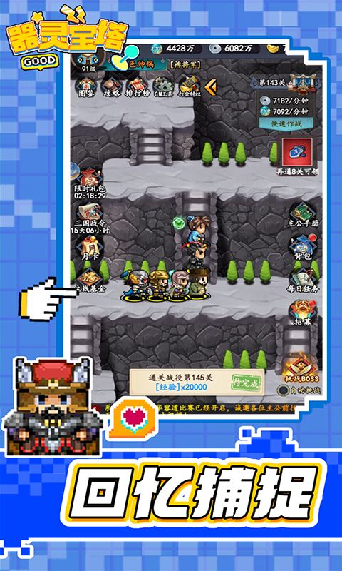 《器灵宝塔(吞食天地经典复刻)》是一款像素回合制H5游戏,传承经典系统的同时,创新游戏玩法,乱世风云,烽火连天,英雄辈出,每一个人心中都有一个英雄梦,每一个人都幻想自己身处乱世当中会如何功成名就,无论是攻城略地,还是智慧谋略,都可以让玩家带领各国名臣猛将一统天下,玩家将扮演一位建功立业的小兵,从汉中之战开始直至一统天下,建立属于自己的小兵传奇,数十种武将技搭配,丰富的宝物装备,各种副本任务,不同玩法给玩家带来耳目一新的感觉,建立属于玩家的统一天下的霸业之路。