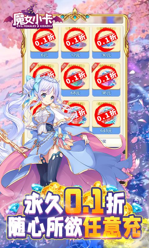 《魔女小卡(专属0.1折福利版)》美甜系二次元卡牌挂机手游它来了,精美的人物立绘,常驻挂机刷装备,点点手指资源送不停,游戏任意充值0.1折,充值648仅需6.48元,7天登录还送史诗级SSR和金色套装,让你闯关快人一步;就让我们在游戏中缔造属于你的英灵羁绊,加成无双战力,挑战黑暗势力,磨炼不灭意志,神兵天降守护正义,离线收益助力成长,酷炫必杀技横扫邪恶。