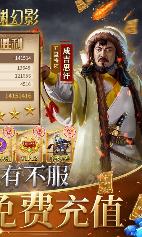 《深渊幻影(GM补给免充版)》是一款经典中世纪背景SLG手游,登陆免费点击充值,激活游戏内VIP等级。上线就送VIP12、88888钻石、888888金币!在线直接领取一万抽,五星神将哥伦布保底必中,还有每日百连抽,各类金币资源应有尽有。超级福利包中更有无限资源、十档GM特权等豪礼只待领主大大们前来免费领取!玩家在游戏中化身荣耀领主,建造家园、招兵买马,带领众多名将征战四方结交天下豪杰,加入联盟并肩作战。快来玩《深渊幻影(GM补给免充版)》,这是权谋战略之间的较量,在战乱的世纪中建立自己的势力吧!