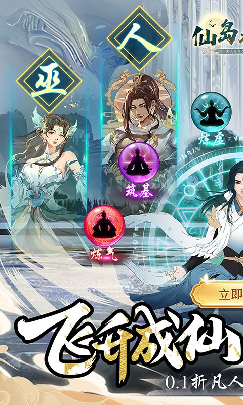 《仙岛大乱斗(0.1折凡人修仙)》写意山水的【新国风修仙放置手游】,在游戏内修仙者可修炼、炼器、炼丹、种药草、历劫打怪、习五行法术神通、自行搭配法宝,玩法众多,历尽千万关卡,终渡天劫,得以登上仙台。