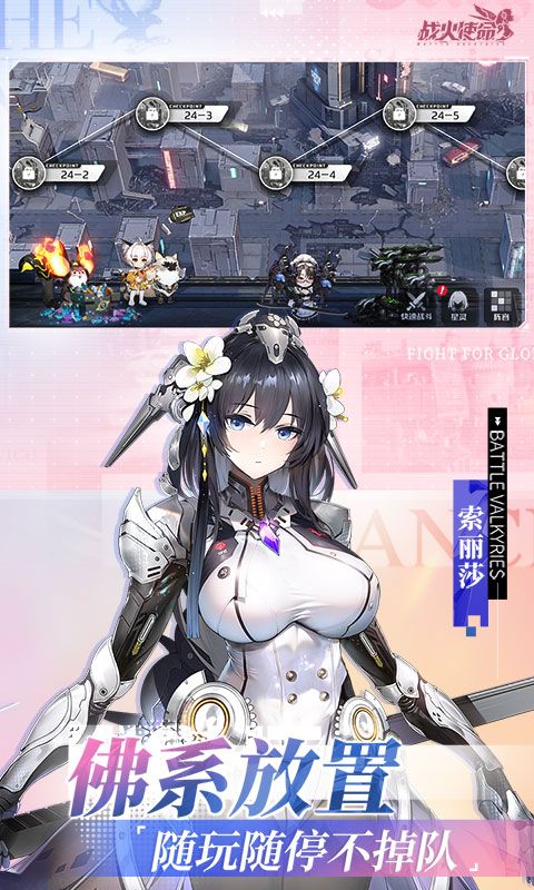 高颜值放置少女《战火使命》融合多种创新玩法,重构末世剧情,与少女一起拯救世界;多种阵营流派,构建你的专属队伍;佛系放置养成,随玩随停不掉队;更有超多福利等你领取,365天天天送十连;上线限时免费200连抽,不同阵营少女任你挑选择。