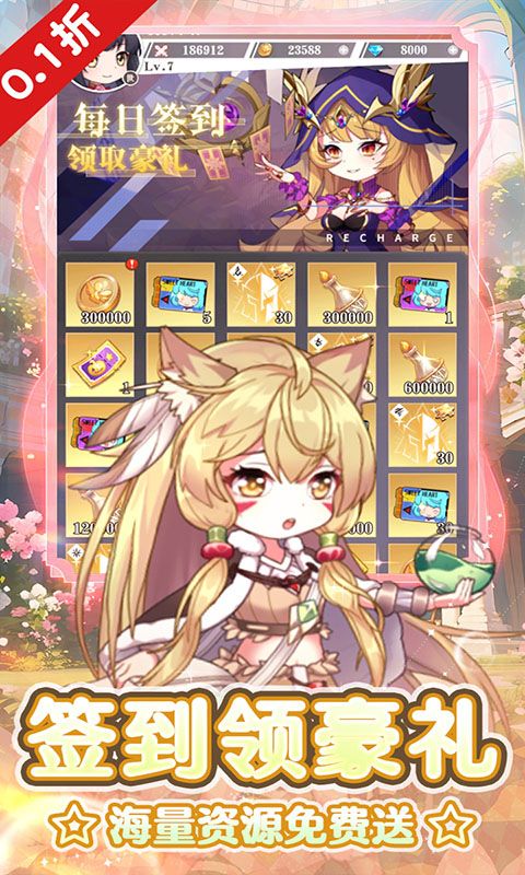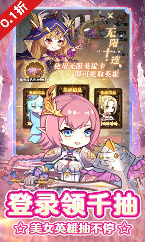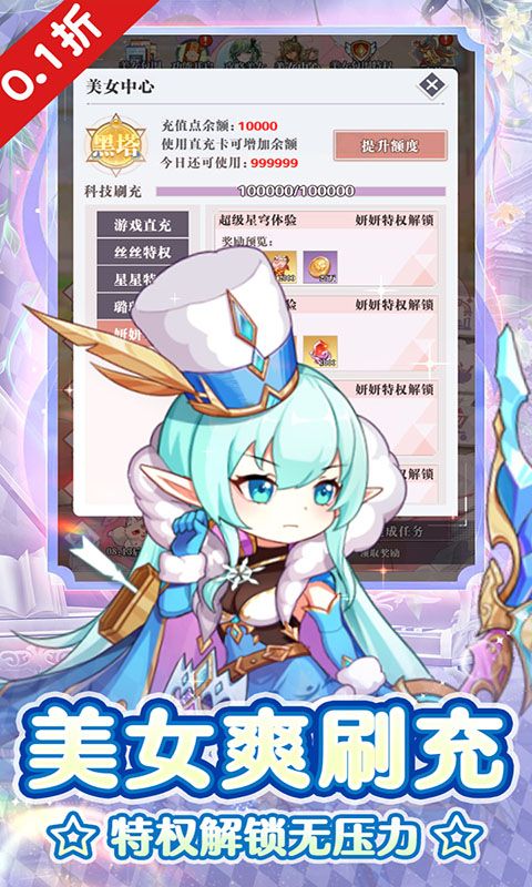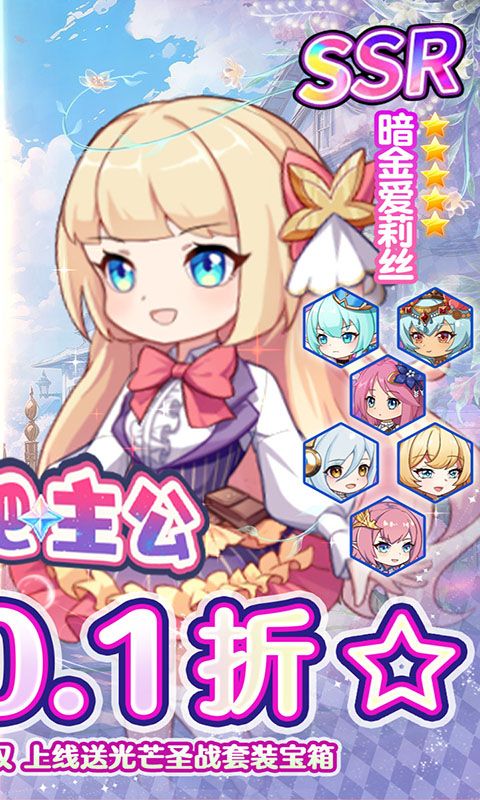 《出击吧主公》是一款放置二次元休闲养成手游,游戏内各式美少女,萝莉? 御姐?应有尽有!游戏将互动养成和战斗冒险相结合,以多位萌娘之间的阵容搭配为核心玩法,配合独特的挂机探索,给玩家带来全新的超休闲放置体验!即时战斗,打破传统战斗方式,放置战斗和随机施法创新融合,强化游戏的策略性和操作,全场充值永久0.1折,最低仅需1毛钱,畅享无限0.1折!登录就送100万现金券见面礼,送1000万金币、1000万英雄经验、高级招募卡、光芒圣战套宝箱!高资质十星英雄白嫖到毕业,在游戏中你将拥有超强美少女战士相伴,数不清的奇幻冒险,快率领你的美少女小队,踏上征途吧!