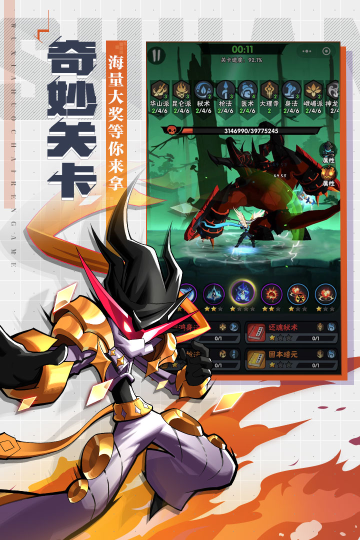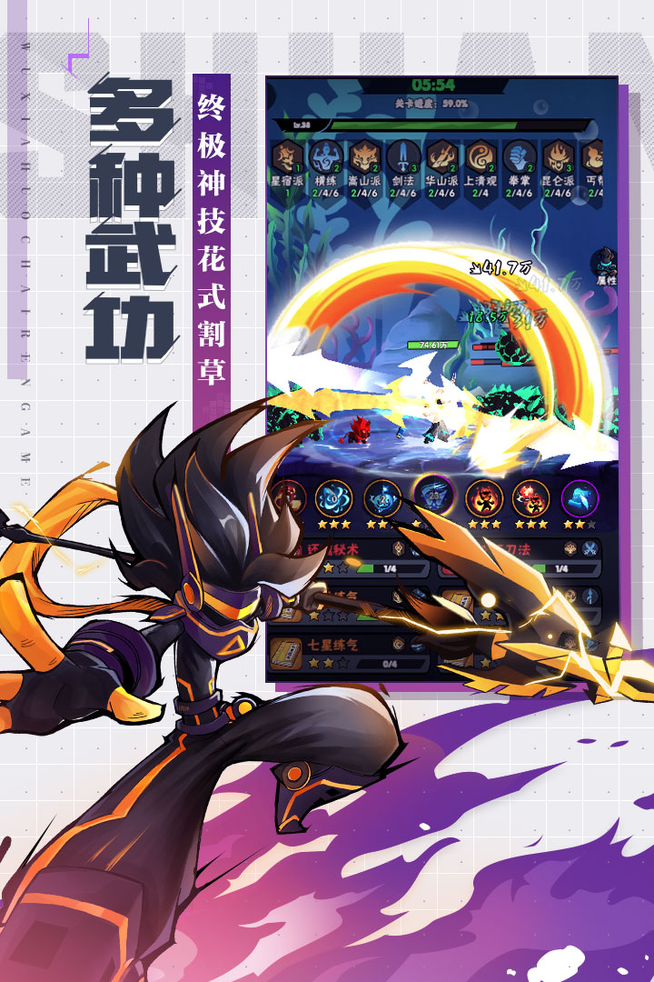 《火柴人归来》是一款2D武侠休闲自走棋手游,拥有火柴人题材一贯的爽快打斗动作以及流畅的动画体验。玩家可带上可爱忠实的宠物伙伴,在危机四伏的火柴人世界里闯荡,在演武场与其他玩家展开刺激的对决。玩家可以不断通过学习新的心法和招式强化自己,最终登上火柴人世界的武侠之巅。