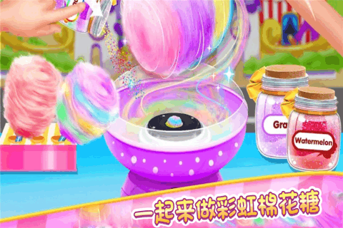 每个孩子都喜欢甜蜜的棉花糖。城市新开了一家超大的糖果店。你想成为商店的经理,学会做棉花糖吗?按照指示,把五颜六色的糖制作成棉花糖。为客户制作不同口味的棉花糖果。扩大你的业务,并提高收入。