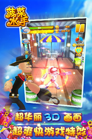 《菠菜水手》是一款由官方正版授权,动作冒险类的3D竖版跑酷游戏。还记得童年里那个身体强壮,吃了菠菜之后更加英勇无敌的大力水手-波派吗?以及经常抢走波派女朋友的大坏蛋,布鲁托。他们都将在游戏里一一登场!