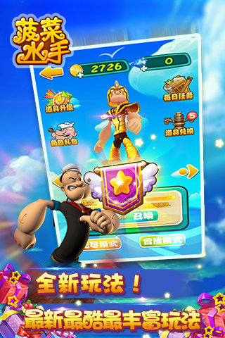 在《菠菜水手》里,玩家将与波派一起,打败布鲁托以及他的邪恶海盗军团,拯救奥利弗!除此之外,波派还获得了来自东方的神秘力量。通过穿上了不同的服装,获得了各种神奇力量!