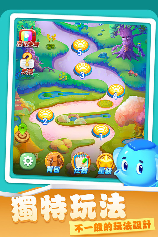 富有挑战性的闯关地图、梦幻甜美的画面风格、丰富趣味的音乐与音效!