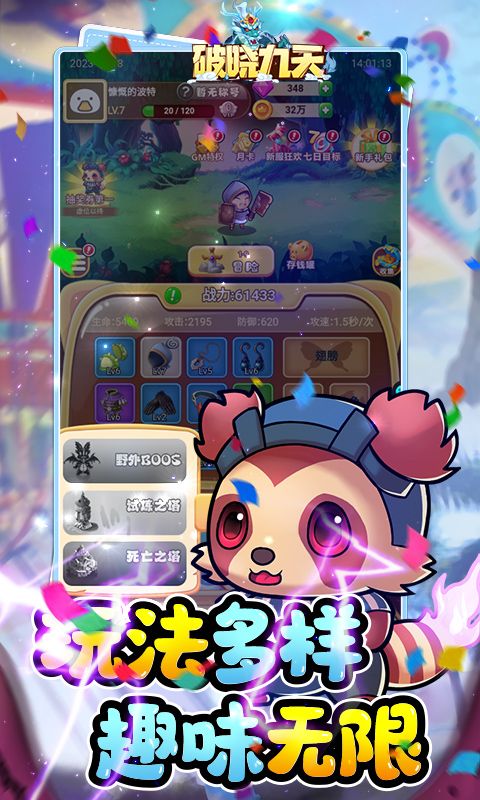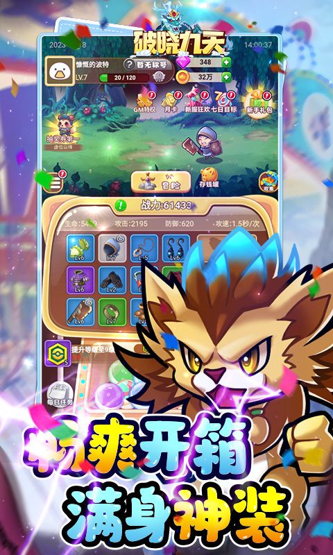 《破晓九天(0.1折畅爽开箱)》是一款角色扮演游戏。 勇者勇闯冒险世界,通过不断的开启扭蛋获得装备提升自己的战力,冒险路上还可以召唤伙伴协同作战,齐心协力击退各路强敌,守护家园!
