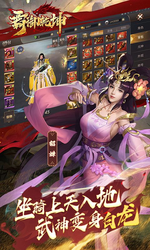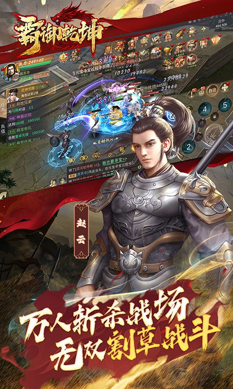 《霸御乾坤》以三国英杰为背景的即时制ARPG手游,可操控诸葛亮、关羽、吕布、貂蝉、赵云等三国名将,体验真三国无双般割草式杀敌,享受超世代技能特效,重温可歌可泣的三国英雄故事。化身三国名将,主宰战场,一骑当千。七星刀、倚天剑、万千名器。名马赤兔,南蛮战象,珍宝异兽遍布天下。家国情仇,尽忠尽孝,是敌也是妻,艰难抉择,三国历史因你而改写