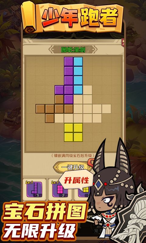《少年跑者(0.1折扣版)》游戏是可以通过开宝箱获取装备提升等级升级武器提高属性来闯关,宝箱里面有低级武器和高级武器,低级武器可以通过出售获取金币,高级则是装备,低级武器出售的金币用法可以购买宝箱升级宝箱从而进行闯关,也可以升级法阵,坐骑,宝石,星图提高属性进行闯关。