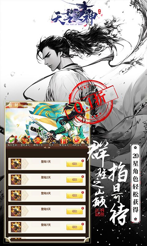 ★史无前例日签奖励5天1循环,每次都有上万资源,10星武将,20星武将