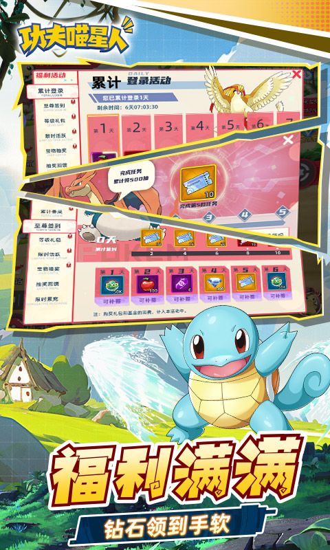 ★登陆赠送红色小精灵-水箭龟,金币*888k,钻石*10K,精灵经验*8888K