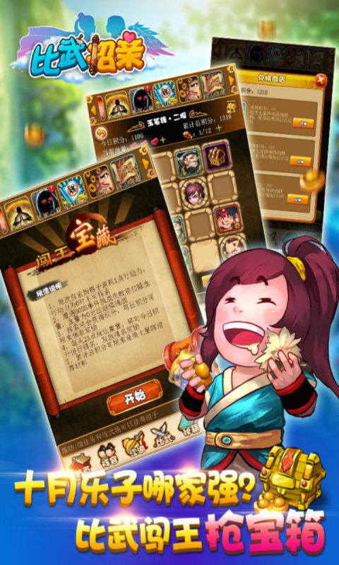 《比武招亲》是中国首款完美融合【时尚Q版】【武侠题材】【真实交友】【卡牌对战】于一体的手游巨作!