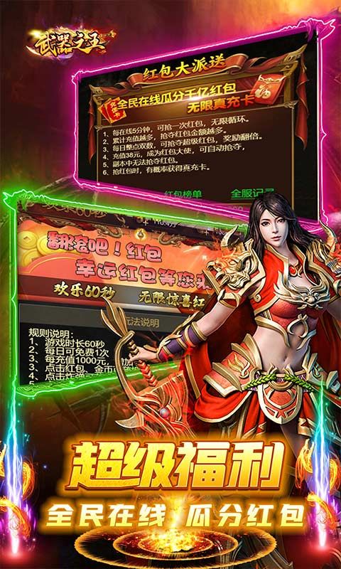 《武器之王(内置0.1折龙辰福利版)》游戏充值真0.1折,真充红包放开送!极致的充值狂欢,超痛快的游戏玩法,您确定不来试试吗?欢乐60秒,翻滚吧,红包!限时时间点红包,手速越快抢的越多!幸运红包等你来抢!开服折扣礼包和每日折扣礼包,内含大额真充卡及超值道具,助力散人潇洒成长!更有限时折扣商城,内置大量超值大礼包,名额有限,等你来抢!装备全靠爆,为散人玩家提供超爽的游戏体验。惊喜红包,全民在线瓜分千亿红包,更有概率获得真充卡,白嫖体验更上一层楼!