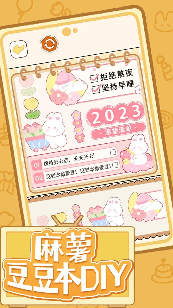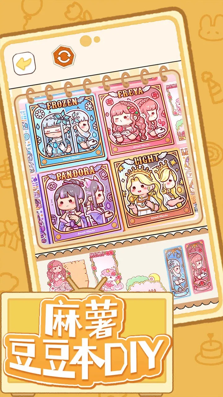 麻薯豆豆本创意手工diy,发挥你的想象力,自由创作收集贴纸制作麻薯豆豆本安静书。《麻薯豆豆本DIY》是一款制作麻薯安静书手账贴纸自由DIY模拟小游戏,每个人都蕴含着一个少女的心,都想展现精致的一面给大家看,贴纸也不例外,玩家可以挑选各种好看的贴纸贴在自己的手账本上,喜欢的话就来试试看谁贴纸贴得更加精美吧!