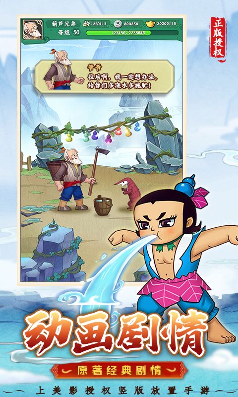 ★正版授权童年回忆经典动画葫芦娃正版手游,100%还原动画剧情,一起去救爷爷吧!
