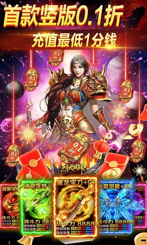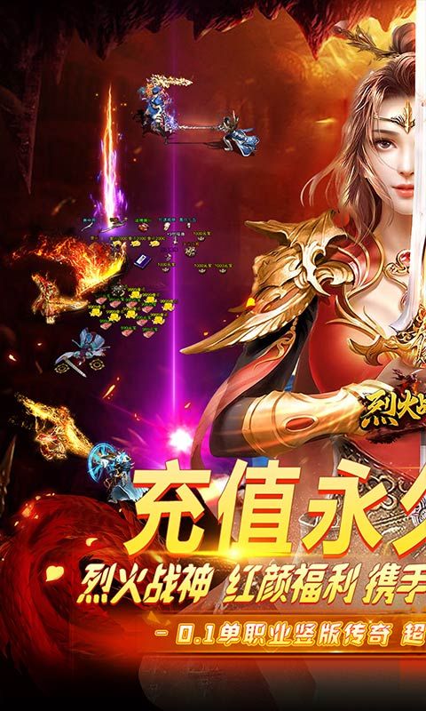 《烈火战神》是全网首款经典竖版单职业真0.1传奇,强势王者归来!-红颜知己伴传奇战神--随我仗剑天涯战群雄-一款独特创新的单职业传奇游戏,高清炫丽的游戏画面给玩家带来无与伦比的游戏体验,夸张酷炫的技能表现给玩家带来耳目一新的感觉,游戏内有海量boss随便刷,光柱道具满地爆,还有真实沙巴克攻城战、剧情式打宝地图,创新的攻城掠地玩法等多种玩法系统等待玩家体验。每天上线送海量道具,海量元宝来玩就有,更有各种神秘高性价比道具等待玩家发现扫货,不肝不氪,轻松挂机即可战力飙升。