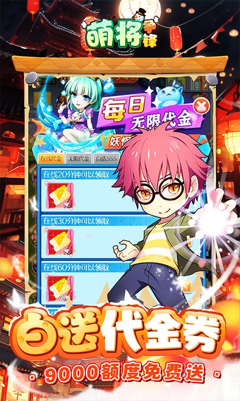 《萌将争锋(0.1折炸裂代金券)》是一款萌系妖怪收集养成类手游,全新版本首续充值0.1折正式上线;全民免费赠送9000元代金券,所有直购礼包都可以购买!游戏拥有多种妖怪、全新战斗体验、自由探索模式,让玩家从妖怪、剧情、玩法等几个维度感受纯粹的养成游戏。