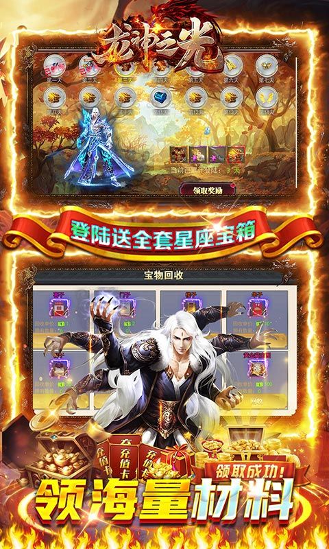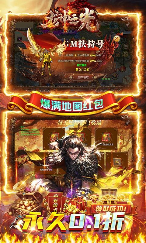 《龙神之光》重磅经典传奇,全场所有充值0.1,上线送GM魂环、绝版称号,千万元宝;绝对真实福利版本,超值豪礼领不停!送满级VIP,还有GM网管特权!满福利开局,刀刀爆充!全新切割伤害翻倍,极致攻速伤害!极品吸血武器,刀刀暴击,刀刀吸血!神装降世,魔血加伤,秒天秒地,满屏爆光柱!装备全靠打,小怪爆终极!