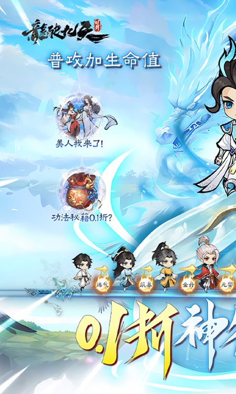 《龙破九天(0.1折神符修仙)》是一款超休闲自动挂机,疯狂打怪爆装备的修仙游戏,游戏里可以打怪爆出不同品质的海量装备,收集神装成为修仙界最靓的仔,还可以收集皮肤,剑灵,异兽,斗技,神通,天赋种种特殊系统,0.1折版本让你更快的突破新的战力高度助你征战仙界,成为前无古人后无来者的仙界至尊