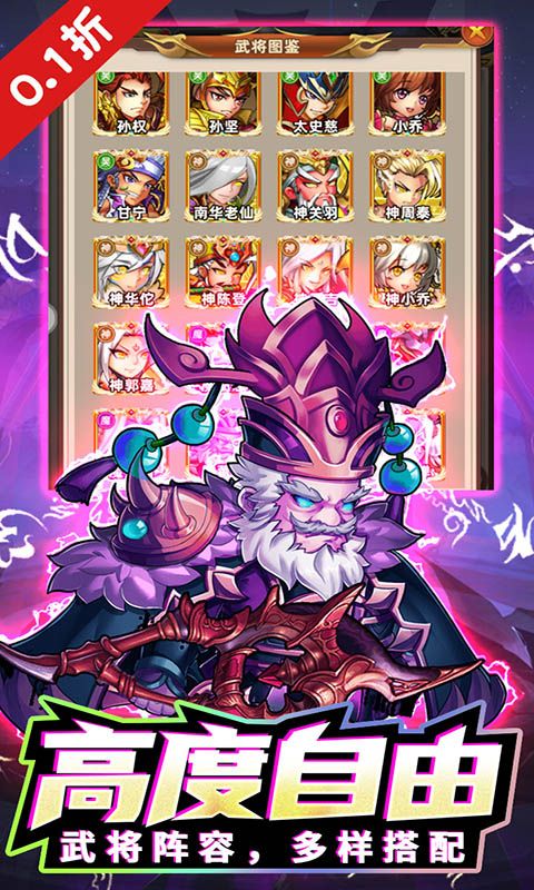 千万三国迷力荐,超强0.1折三国策略卡牌!《暴走兵团》是一款以三国为背景,高品质有策略的Q版放置卡牌手游!创新玩法各式各样来袭,跨服交友、跨服竞技通过多种搭配打造一支属于玩家的专属阵容!更有海量福利,累登送百万福利,极品神装登录获取,免费送千抽,天天领抽卡,轻松玩转人人高战力!多式副本让玩家身临其境乐翻天,炫酷动态技能打斗特效高度满足玩家需求。更多好玩不厌的精彩独特玩法等着您来亲身体验!