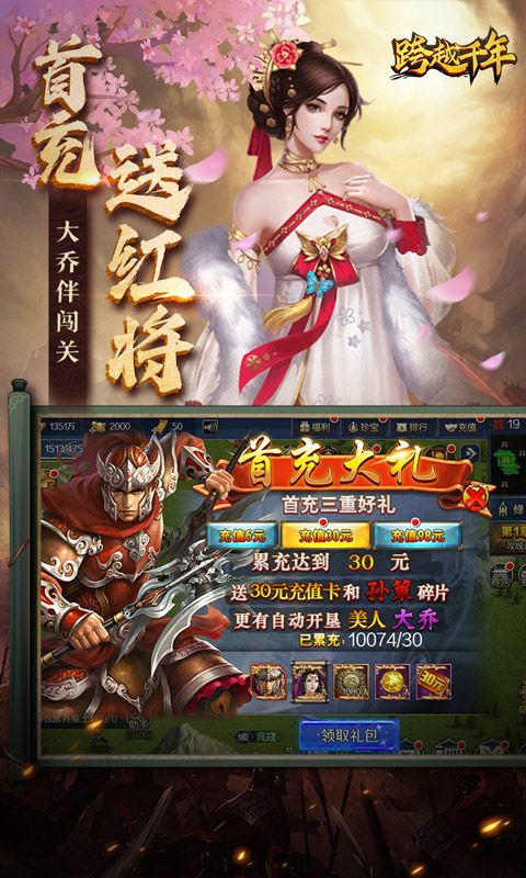 重回三国,全新BT版本《跨越千年》震撼来袭,即时国战策略游戏,超大实感地图,智能多部队行军,丰富的战斗体验和多样内政玩法,给你带来不一样的体验!无尽的战法搭配,特色的宝物羁绊,能让你培养出不一样的英雄,打造精致的多路部队,在热血战场中全线出击!除此之外,游戏特有的SLG策略模式,结合三国武将养成玩法,过五关斩六将,攻城略地,助主公一统三国!