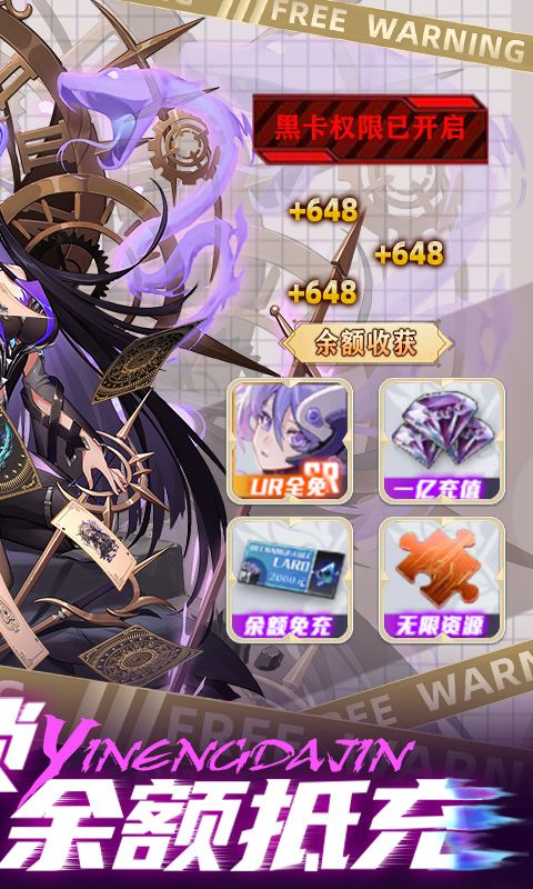 ★后缀说明:内置黑卡账户,游戏内置余额包以及通关可免费获得账户余额,可免费用于游戏内的充值点,自带折扣充值档位,0.1折充值。