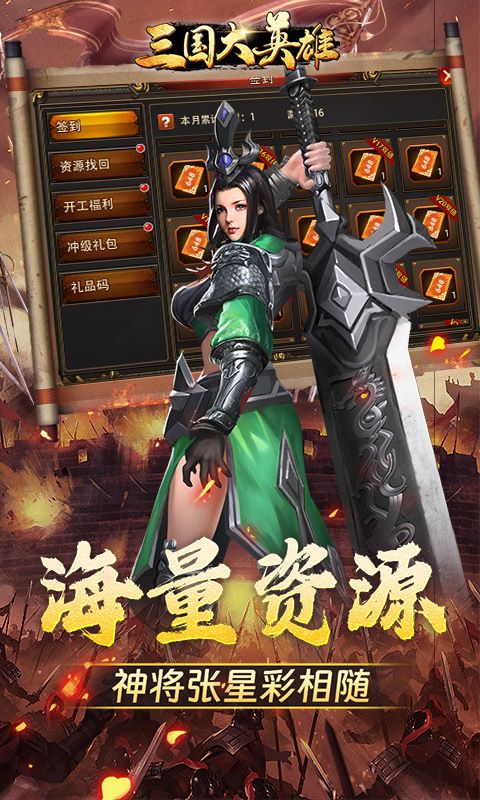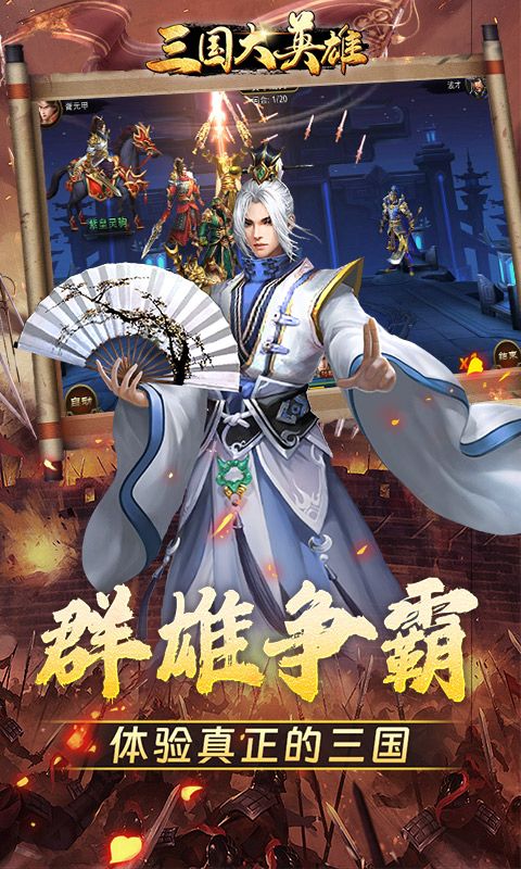 正统三国策略手游——《三国大英雄》来袭!玩家尽情扮演三国霸主,统率群雄、拓展势力、幻化骑宠、锻造神兵… 精妙布阵技巧,热血微操激战!国战、军团战、跨服战,一个都不会少!来吧,过关斩将,攻城略地,圆你一个称霸三国的梦!三国情,英雄梦,真实还原,血战沙场... 网罗三国名将,吕布、赵云随你调遣。坐拥绝色后宫,貂蝉、双乔任你勾搭。排兵布阵,攻防有术,有勇有谋方能百战不殆!掌中微操,指尖大招,冲阵破敌一气呵成!霸气主公技能,关键时刻制敌!一键释放,极致开战,千军万马又能奈我何?赤兔、神虎、麒麟、凤凰… 收服稀世骑宠,组建将宠大军,疯狂兽性尽情撕扯敌军吧!各式神兵,各有功用,暴击、吸血、命中、治疗、防御、抗暴…… 佩戴神兵,如虎添翼!