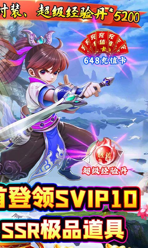 ★上线福利:送SVIP10、648元充值卡,SR极品时装、超级经验丹*5200