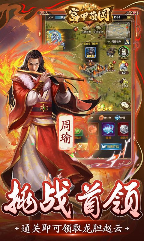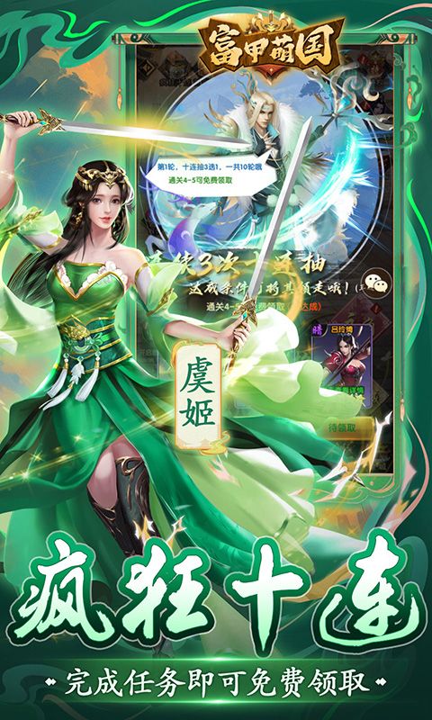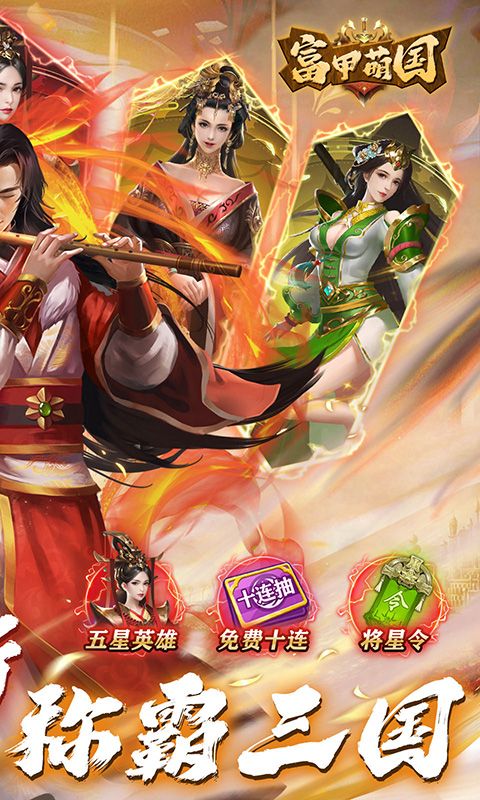 《富甲萌国(三国争霸0.1折)》重回三国,全新0.1折三国卡牌来袭,超爽充值比例0.1折,每日上线签到即可领取五星英雄和橙色装备还有海量升阶材料,连续登录7天技能领取国色大桥,挑战首领即可领取龙胆赵云和极品红装还有各种极品道具等你拿,超爽福利,无需爆肝,登顶称霸,指日可待,就等你了主公