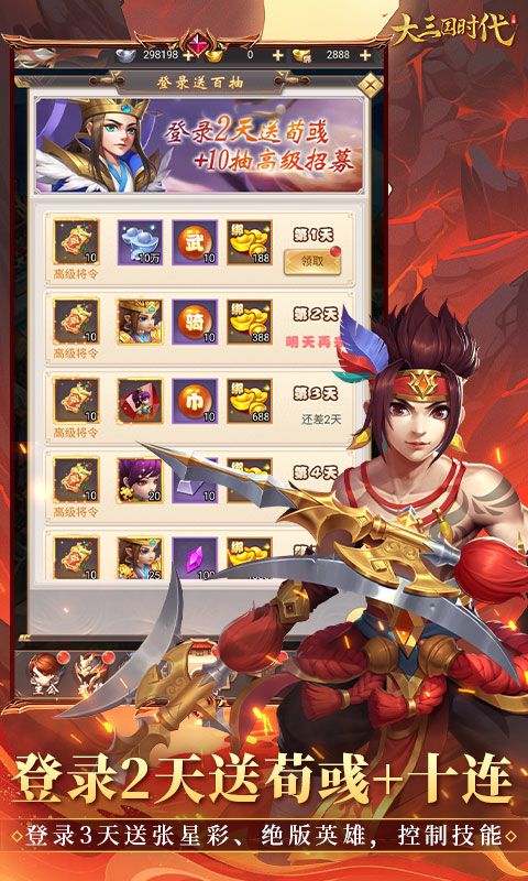 ★登录2天送荀彧+十连、登录3天送张星彩、绝版英雄,控制技能