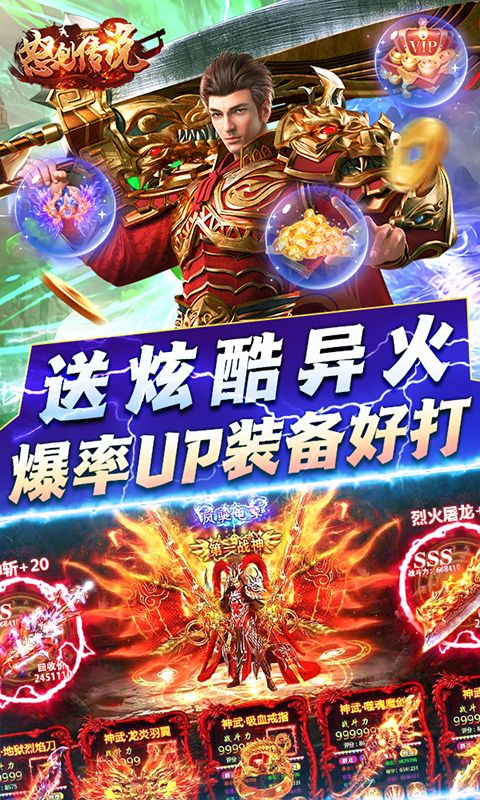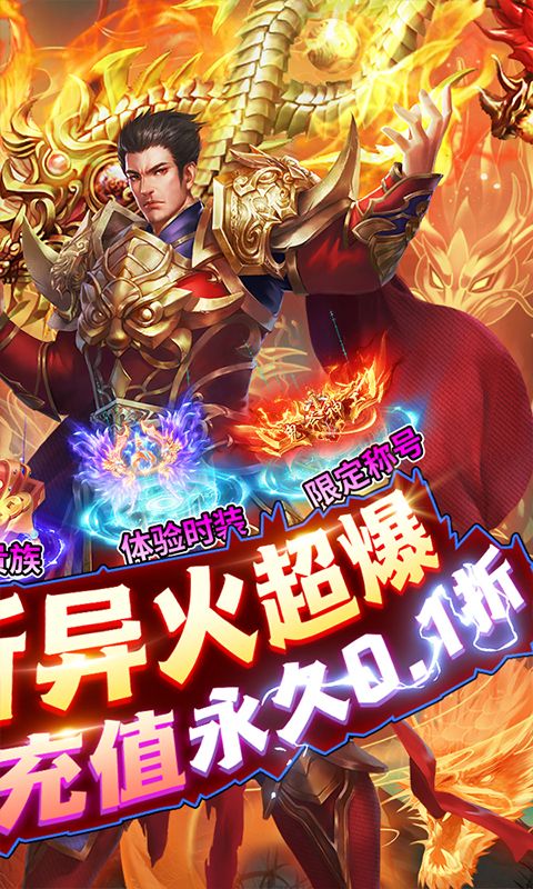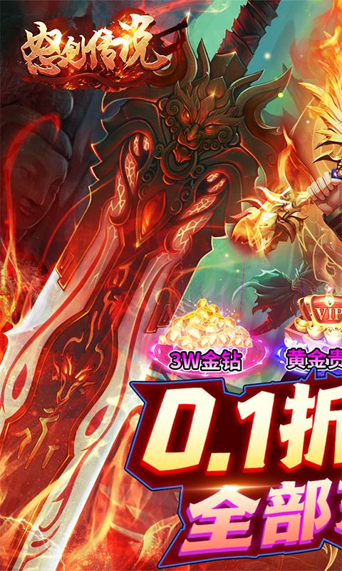 《怒剑传说》0.1折异火超爆,充值永久0.1折!上线送体验时装、限定称号、3W福利金钻、500W钻石。送黄金贵族,免费领霸气总裁时装。主线送炫酷异火,爆率提升满屏光柱。全民悬赏领好礼,打怪升级领金钻。