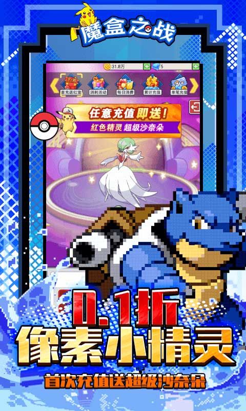 《魔盒之战(像素小精灵0.1折)》是一款回合制像素风宝可梦游戏。其再现经典,重现宝可梦抓捕风格。多张地图玩家自由探索。天梯竞赛,跨服竞技,公会争霸,家园系统等多种玩法等你来体验。占领道馆可获得额外的属性加成。灵活多变的战斗系统。天气也会很大程度影响战斗。精灵觉醒,萌宠养成,装备升级,个性时装,炫酷称号。丰富的养成路线等你来体验。在全新的宝可梦世界中,你将领略不一样的冒险旅途。捕捉500+的全世代精灵,成为一名伟大的训练师,问鼎精灵大师的巅峰。