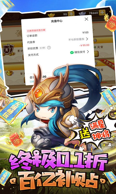 ★后缀说明:永久0.1折,上线即送关羽张飞,通关保送满星主角。