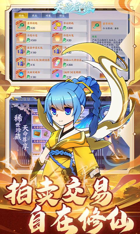 《天影奇缘》是一款全新3D仙侠RPG手游,新增GM商店及充值卡掉落,白嫖首充,畅玩山海界!精美画面营造影视版的视觉效果,华丽的战斗场景、百变时装坐骑、炫酷技能特效和真实的打击感!汝将化身天命者,降服山海异兽,养宠爬塔,邂逅奇缘,共游山海大陆!独特的艺术风格,解锁天命特权,轻松游历山海界,新增自动战斗,单手操作,不肝不氪,好玩不累-论道争锋,真人pvp-全服论道,提升战力,登顶山海异界竞技-仙盟相聚,共创辉煌-建立仙盟公会,共同建设仙盟,激斗仙盟boss,扩大仙盟影响力-华丽服饰,个性萌宠-华丽仙羽,彰显个性,超强萌宠,红尘相伴