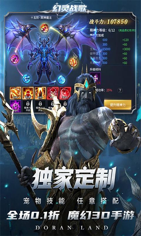 《幻灵战歌(0.1折天神降临刷充)》是一款3D魔幻MMOARPG手游,恢弘精美的场景,华丽特效的技能,致力为您打造美轮美奂的中世纪风情!更有激萌伙伴、炫彩翅膀、成长神器为您的勇士之路助战!战盟争霸热血澎湃、百变时装随心搭配、海量BOSS肆意挑战!命运之轮开始转动,多兰大陆已经岌岌可危,无畏的勇士正挺身而出,是时候擦亮手中的利刃,携手捍卫曙光圣殿,开启惊天泣神之路!