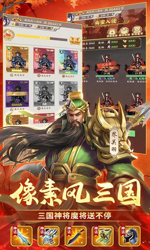 《群英打三国》是三国卡牌开箱游戏,游戏整体采用了通用的三国题材元素,其中又注入新颖的创意元素进行改良和融合,真实还原草船借箭、火烧赤壁等经典名场面,传统且不失现代!招募传说武将为你所用,用策略卡牌沉浸式体验3D回合制斗技对决,谱写三国传奇。采用像素美术铺开立体丰满、宏大华丽的三国大世界,魏国、蜀国、吴国、八荒活灵活现,这是一场逍遥天地间的三国浪漫奇想之约,希望与你共赴沉醉其间。沉浸式体验一统天下,从弱小的人物开始,修炼、打宝、炼丹不断提升自身的境界,创新海量属性设定,流派不同阵容各异各有千秋,技能组合策略多变,人物搭配由你决定,自由搭配无废卡!