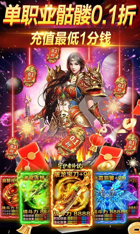 《守护者传说(0.1骷髅美人传奇)》是经典竖版单职业真0.1传奇,强势王者归来!开局一只小骷髅,所有装备全靠打!精美的游戏画面,丰富多彩的游戏系统,给玩家畅爽的传奇游戏体验!一款独特创新的单职业传奇游戏,高清炫丽的游戏画面给玩家带来无与伦比的游戏体验,夸张酷炫的技能表现给玩家带来耳目一新的感觉,游戏内有海量boss随便刷,光柱道具满地爆,还有真实沙巴克攻城战、剧情式打宝地图,创新的攻城掠地玩法等多种玩法系统等待玩家体验。每天上线送海量道具,海量元宝来玩就有,更有各种神秘高性价比道具等待玩家发现扫货,不肝不氪,轻松挂机即可战力飙升。