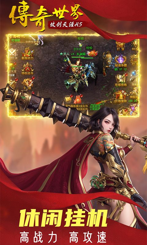 《传奇世界之仗剑天涯H5(0.1折)》是一款复古还原传奇游戏,玩法极致升级战斗更爽,职业技能免费抽,可召唤战兽进化战将,天天都能约战攻沙,带你轻狂热血续青春!
