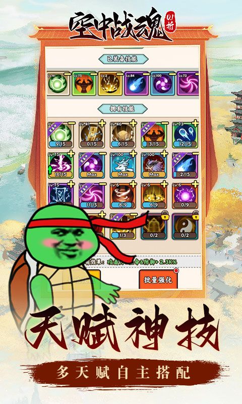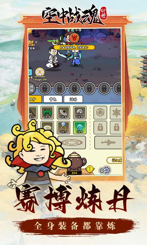 《空中战魂(炼丹开箱爽充0.1折)》是一款闯关挂机的RPG休闲游戏,玩家将扮演勇往直前的帅哥,通过炼丹获取装备,带上强力可靠的小伙伴们,再自由搭配多样的技能,不断击败敌人提升战力和获取各种重要资源!而在游戏里面,只需轻松按按按,战力涨涨涨,全自动战斗护肝,无论上班摸鱼还是下班解压,都是必备的哦~没时间解释了,勇士们快上车吧!